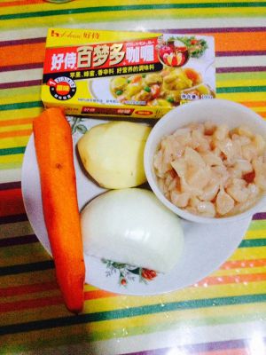 先把鸡肉,土豆,胡萝卜,洋葱洗净切好