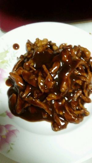 锅里留少许油,小火下甜面酱 翻炒1分钟兑少许开水熬1分钟、把事先炒好的肉丝倒进去翻炒盛出,完事!