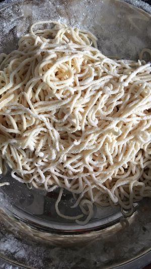 里脊肉加一勺料酒,一勺生抽,两勺淀粉,用手抓匀。