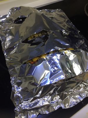 不喜欢烤箱喷溅,盖上铝箔纸,纸剪几道口。210度•25分钟。