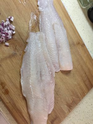 一、 鳕鱼融化、擦干水分后,用少许白胡椒粉、盐和酒腌大约20分钟。白蘑菇切片,洋葱切丝