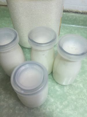 装杯,放入酸奶机6到8个小时,拿出来后放入冰箱两个小时,即可使用