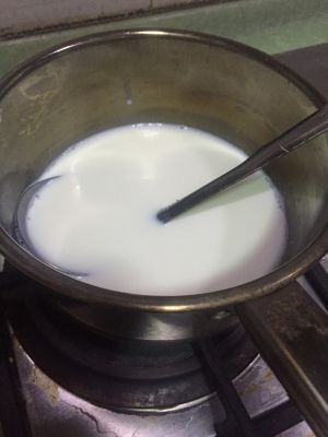牛奶中加入白砂糖不停地搅拌,中大火加热至沸腾关火,放凉至30度左右。