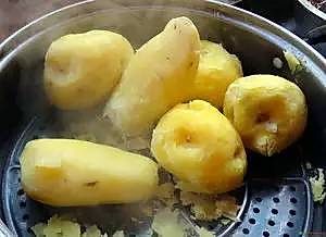用电饭锅将土豆蒸熟(能够捣烂的状态即可)。