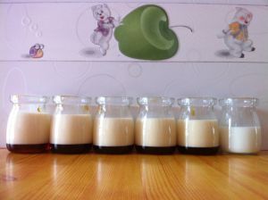 取出两个鸡蛋的蛋黄 加入100g砂糖搅拌 把牛奶加热 温热既可。把蛋黄液和牛奶搅拌 用滤网过滤奶液两到三次 之后倒入杯中