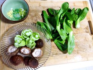 青菜、香菇洗净备用。