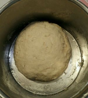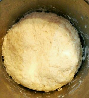 4.面粉加温水和酵母揉成面团发酵