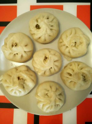 9.蒸锅烧水至沸腾,然后将包子放入蒸锅中。蒸15分钟,关火闷3分钟。