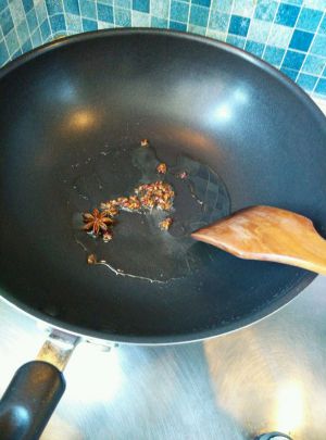 热锅凉油下花椒大料爆香。