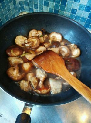 放入香菇后,小火慢炖收汁