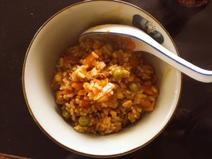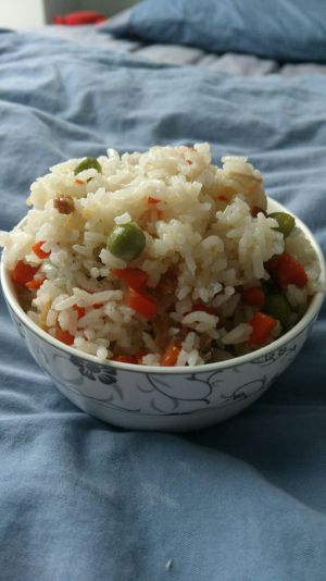 香喷喷的香肠什锦饭出锅啦。。菜也无需再炒了,是不是很方便啊?