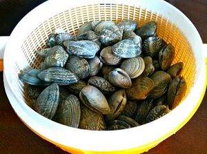 丝瓜洗净去皮滚刀切块。花蛤放在盐水中吐水,时间1-2小时。
