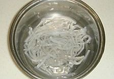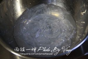泡软的琼脂放入200ML水,小火煮至琼脂完全融化。