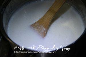 把牛奶 水 杏仁粉 白糖大火煮沸
