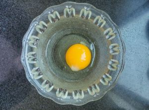 用勺子压扁 放入之前打散的鸡蛋液中速度捞出入盘