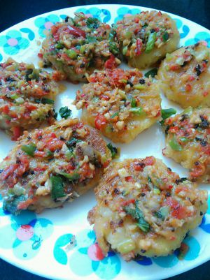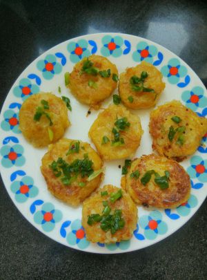 出锅之后我把之前准备的葱姜蒜红辣椒放到还有残留油的平底锅里稍微热了一下:)因为品尝土豆饼有点淡~我又在葱姜蒜里加入了少量的醋跟盐巴~最后把这些汁挨个放在饼上~正好缓解油腻感~好吃不油腻的土豆饼就这样诞生啦。PS:同时反馈步骤太繁琐:) 我觉得好吃的东西是值得我们去付出的。
