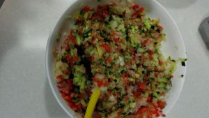 各种配料加面粉,盐,鸡精,黑胡椒加水搅拌均匀