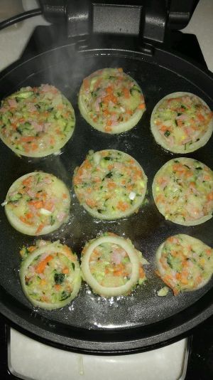这时打入鸡蛋牛奶放入盐【少量】鸡精。打撒