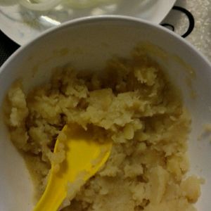 土豆塌成泥与肉沫混合,加点生粉,一点点牛奶!