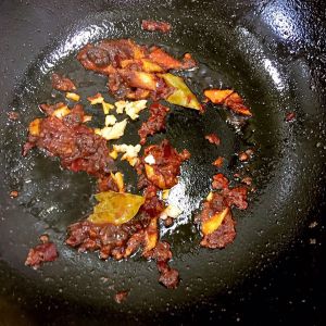 豆瓣酱用微火煸熟加调料翻炒均匀。