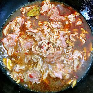 加水和生抽煮沸后,放入里脊肉煮熟。(3-5分钟)