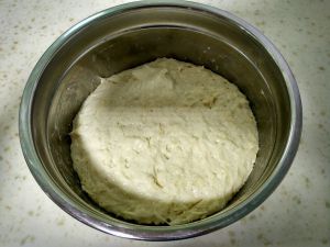 充分揉成光滑的面团,(我用厨师机慢速搅拌了10分钟),揉好后盖上保鲜膜,室温下松驰15分钟;