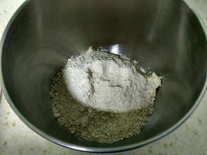 将发酵好的种面团放入搅拌桶,加入糖、黑麦粉;