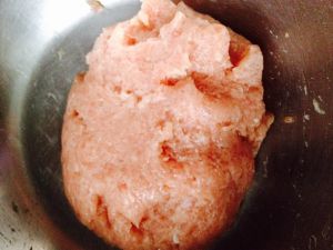 我剁猪瘦肉馅,加入所有调料和适量水,搅拌上劲儿。