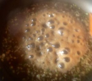 锅中加入蒜末翻炒,倒入调好的汁儿,炒出冒泡的汤汁后,倒入炸好的里脊肉翻炒,出锅前再加点白芝麻,就哦了~