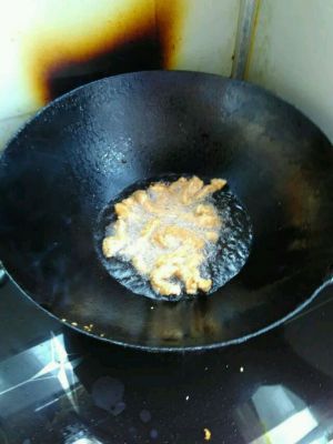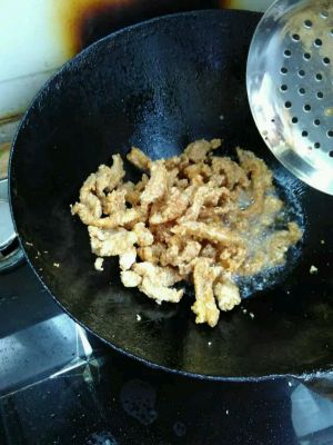 锅内放油,油热后放入肉条炸着金黄色捞出