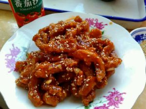 特写一块吮指糖醋里脊大片! 不用描述多好吃了, 一大盘没顾上照,都没了!