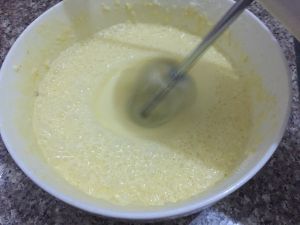 把2倒进3里混合均匀就可以了,然后放进冰箱冰冻5小时左右,我看别人的方法都是冰冻一个小时左右拿出来翻搅下,我这个方法不用,(因为淡奶油用的比较多)吃的时候拿出来也很软糯,特别香醇,比哈根达斯不差.