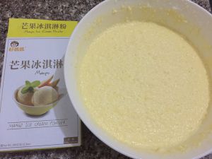 芒果冰淇淋粉加入牛奶搅拌成糊