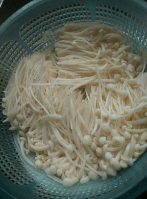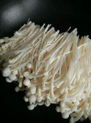 金针菇洗净,用淡盐水泡一下。5分钟差不多。