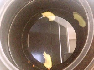 砂锅冷水,放入姜片和丁香,烧热。