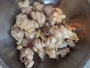 鸡肉捞出沥干备用
