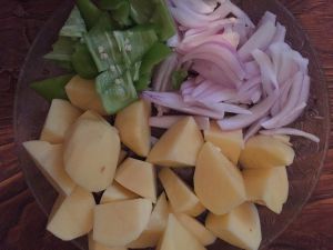 洋葱、土豆、青椒切好备用