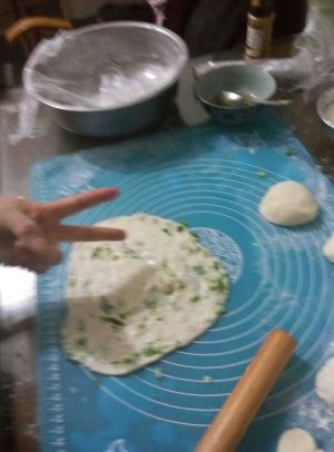 擀好的葱油饼,备用。