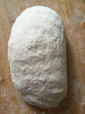这一步骤没有拍照,就叙述一下好了,很简单 把准备好的面粉,加点盐,然后加水,揉成面团,这里不需要用到酵母啊泡打粉什么的,就把面粉揉成面团就好了,揉面团大家都会的吧,然后盖上保鲜膜,自然常温发酵一小时,直到面团发到一倍大,表面光滑,就可以了,然后把面团揉一揉,把里面的空气揉掉,这里在揉面的时候可以在垫板上撒一些面粉,以免粘,但不要太多