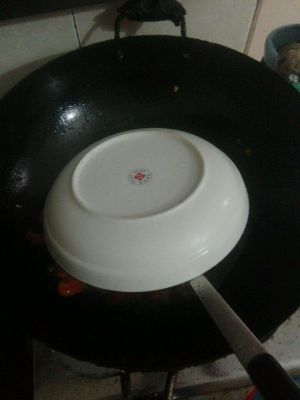 加水之后加入豆腐干,倒入调好的酱汁盖上一个碟子,闷一分钟,闷的时间不可太长。