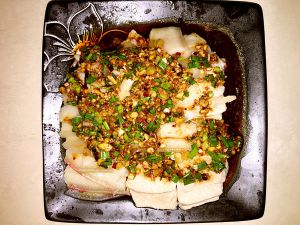 调料:辣椒油5勺、花椒油3勺、酱油2勺、醋1勺、鸡精适量、盐适量、葱姜蒜混合浇在肉上