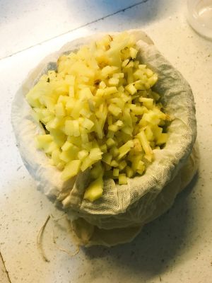 生姜洗净去皮切碎,装入煲汤料袋中榨出姜汁。