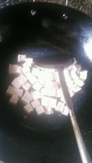 豆腐切块煎至两面金黄