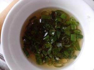 小葱切好放入碗中 加少许盐 倒入热油制成葱油