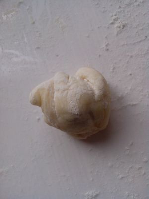 面粉+开水烫熟+冷水恢复面的部分筋性,揉成光滑面团,放置一晚,准备早上再做