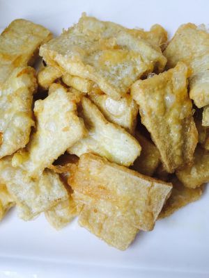 金黄色的豆腐,这时候撒上椒盐也好吃