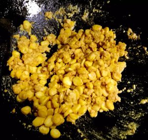 锅中放加热,放入玉米粒炸至金黄,出锅沥油。