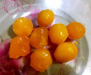 炸好的玉米和青豆,我就是开始炸时用筷子搅动,有些淀粉脱落。