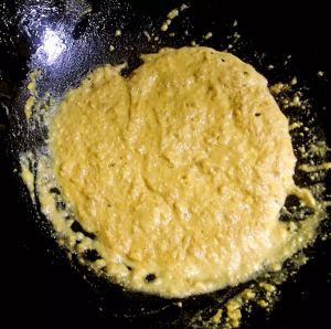 锅中倒入少许底油加热放入浓香的鸭蛋黄(最好提前用勺子碾碎)