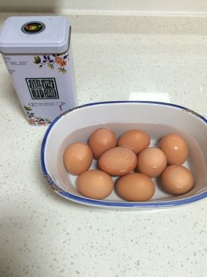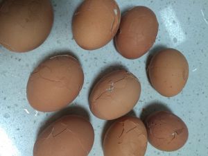 挨个把煮熟的鸡蛋壳敲碎,不要剥壳